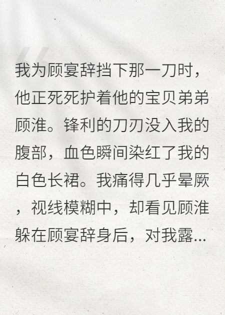 “我想我爸现在最后悔的就是救了你的父亲,赔了他自己的命。”出租车驶远后,